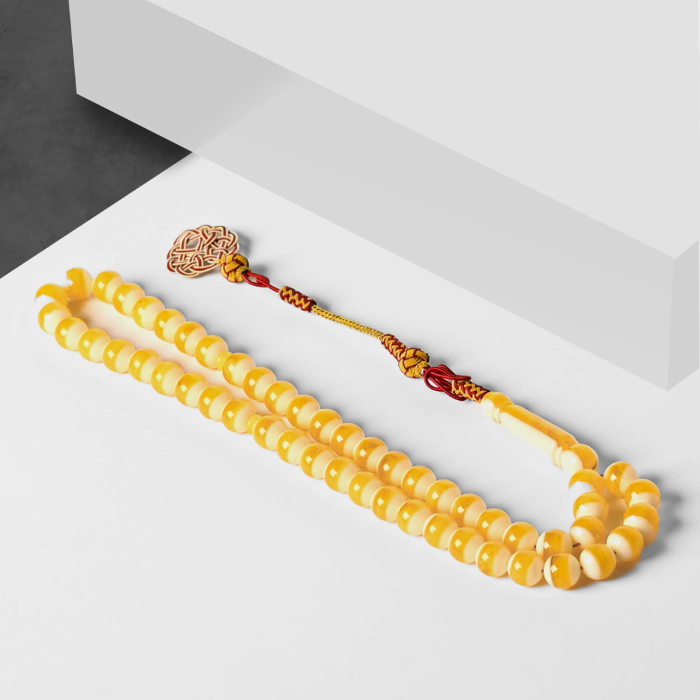 سبحة - مسبحة - مسباح بكلايت أصفر مكحل بيج مع طربزونة فاخرة ..